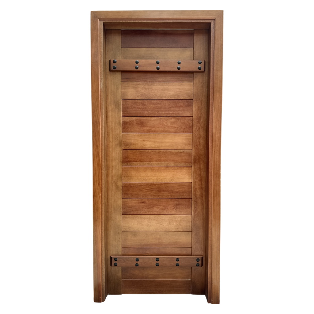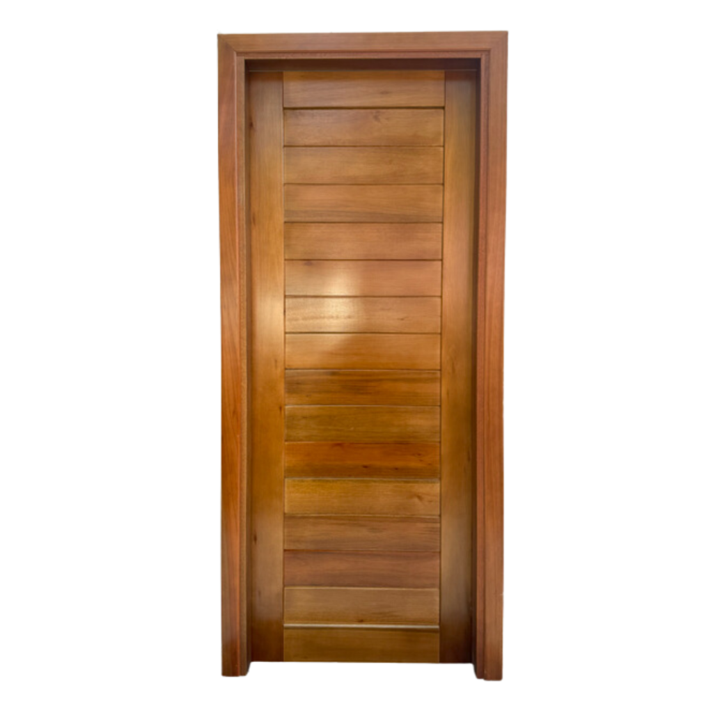 Porta Madeira Maciça Milão 02 com batentes e guarnições