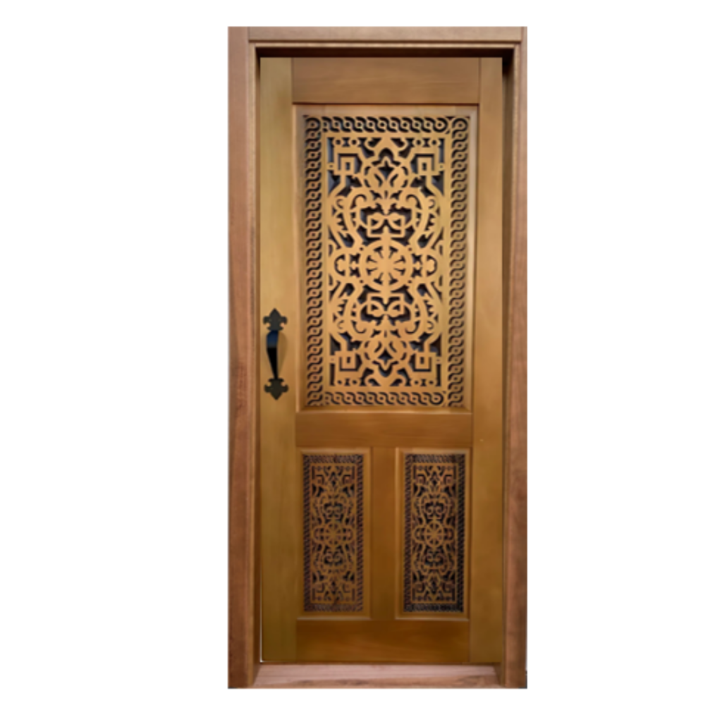 Porta Madeira Maciça Entalhada modelo Bali com batentes e guarnições