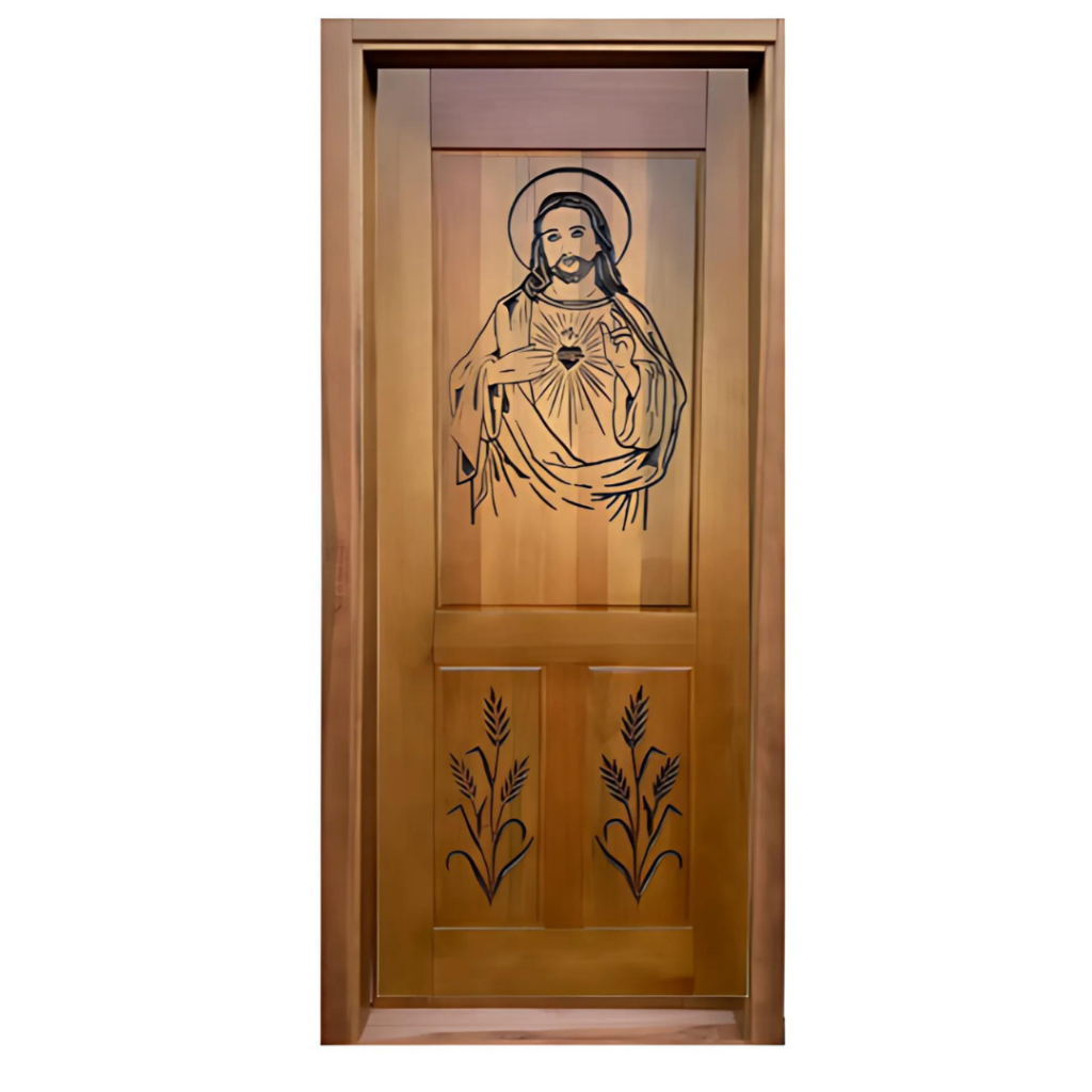 Porta Madeira Maciça Entalhada modelo Sagrado coração de Jesus com batentes e guarnições