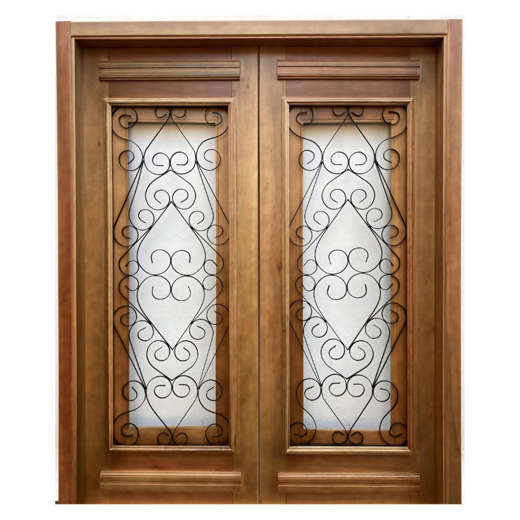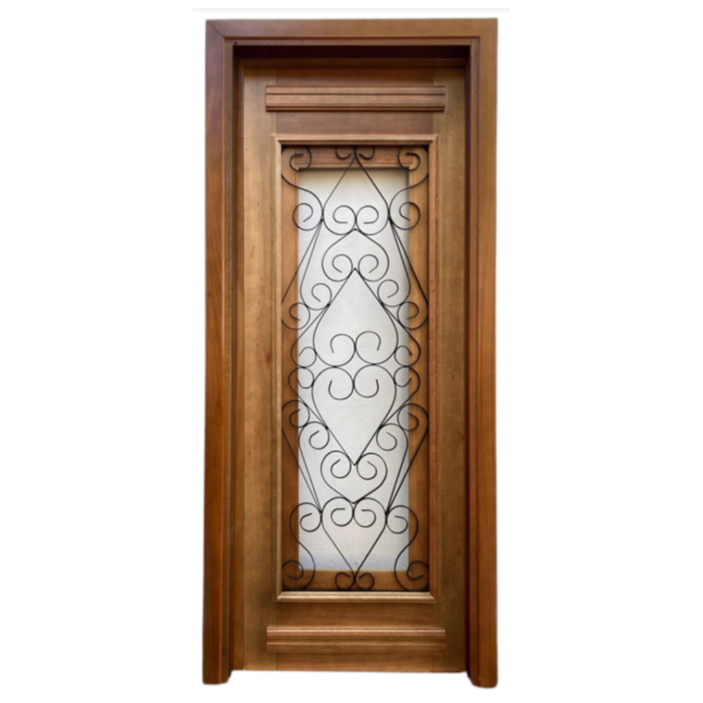 Porta De Madeira Maciça E Ferro Zeus grade inteira Arabesco Com Batentes