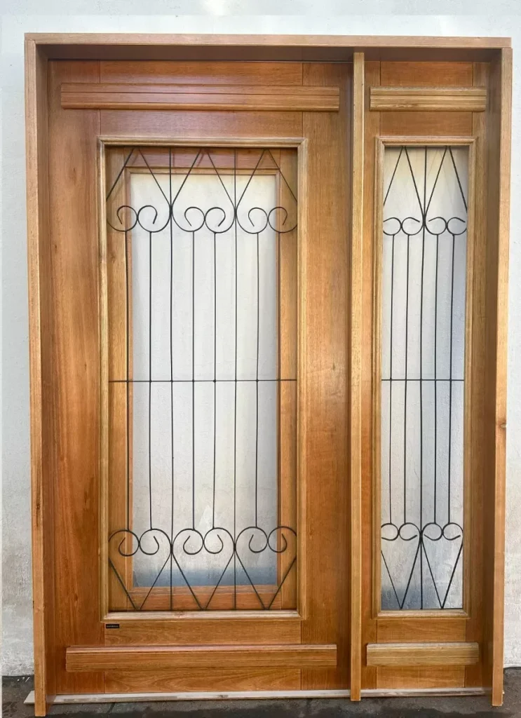 Porta Portal Zeus grade Inteira Madeira Maciça Ferro Com vitrô Lateral