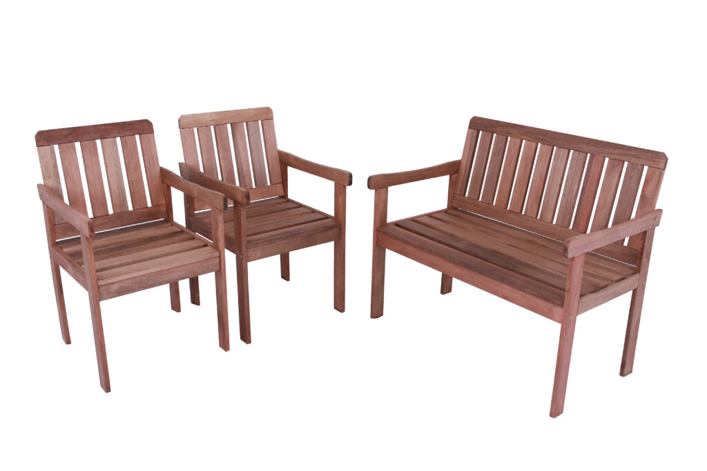 R$ 94,05 no pix R$ 99,00 Em até 12x de R$ 8,25 sem jurosConjunto Siror 3 Peças Namoradeira, Poltronas Para Jardim Em Madeira Maciça