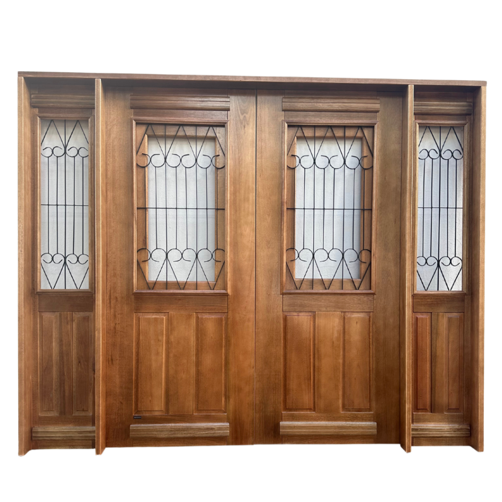 Porta De Madeira Maciça E Ferro Zeus grade inteira Arabesco somente folha