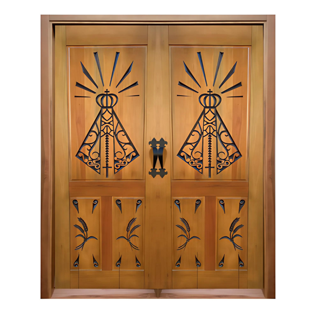 Portal duas folhas Madeira Maciça Entalhada modelo Nossa Senhora Aparecida