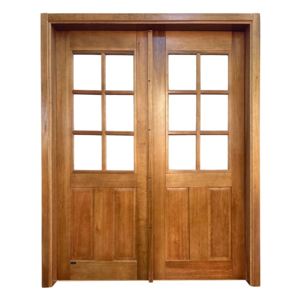 Porta Madeira Maciça e ferro Zeus meia Grade Paris com portinhola batentes e guarnições