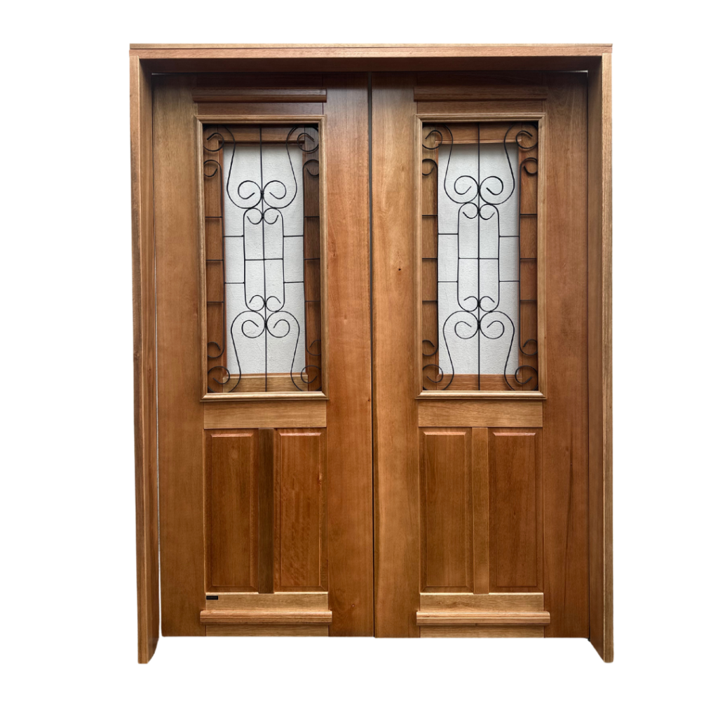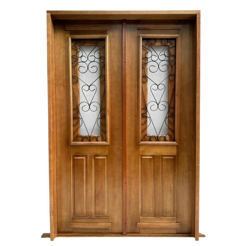 Porta Madeira Maciça e ferro Zeus meia Grade Arabesco com portinhola batentes e guarnições